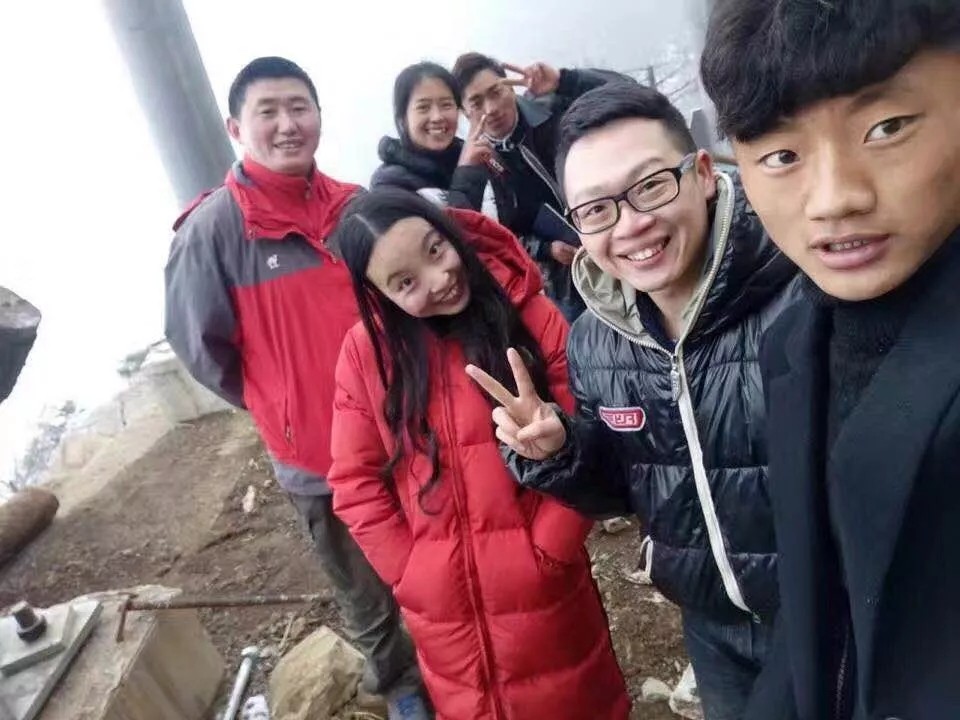 M:還真的有一件事挺難忘的,還很驚險。我記得有一年去外地工作,去到了一個雪山上,是那種真正的雪山,一望無垠。那時候因為項目原因,要到雪山上去調(diào)研,可是上山的路極其難走,我和同去的小伙伴是抓著有刺的植物和修纜車留下來的電線,在將近六七十度的陡陂攀爬上去的。由于路實在太難走,又摻雜著一些意外,我和大伙兒走散了。在茫茫的雪山上我重心不穩(wěn),一不小心翻了幾個跟頭,差點掉了下山。幸虧小伙伴們立刻找來了幾個當?shù)厝?,大家一起找我,最后我才得以脫險。說真的,挺感謝他們,不然后果不堪設想~對了,最后我們還拍了個合影來紀念這段令人難忘的旅程。我現(xiàn)在想起來,覺得雖然驚險,但也成功地突破了自我,感覺很棒。